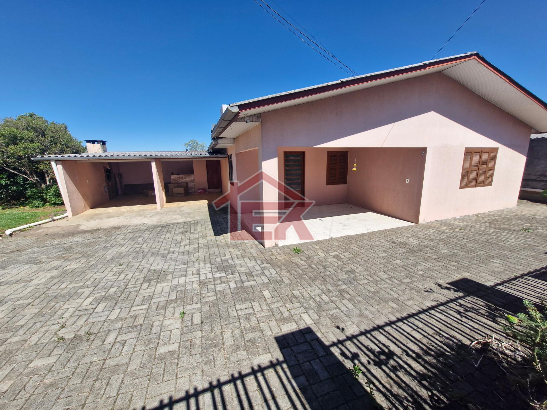 Casa de alvenaria com aproximadamente 130m2, bem localizada, com três quartos, sala, cozinha, lavanderia, banheiro social, churrasqueira, garagem com capacidade para dois veículos