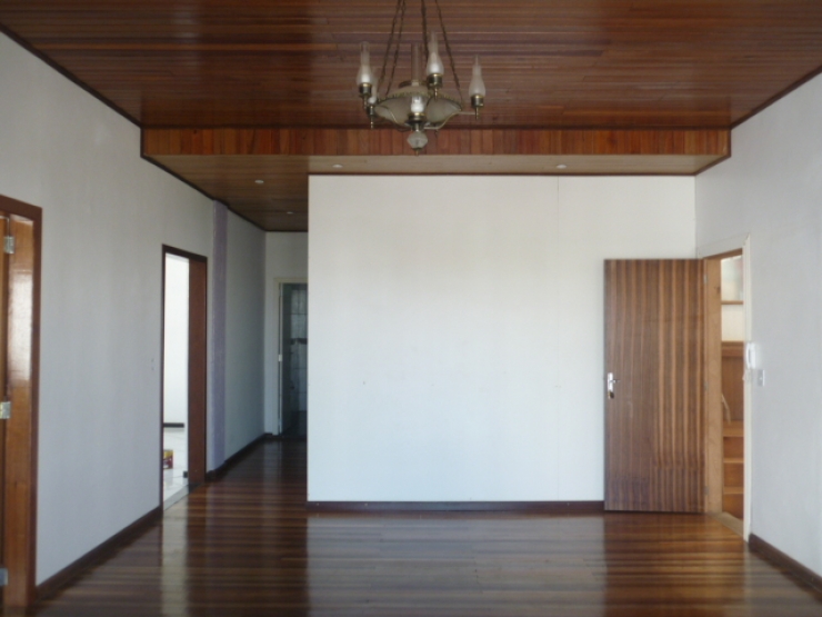 Um apartamento com área privativa de 136m² com sala, cozinha, 02 quartos, 01 suíte (inacabado), um BWC social, lavanderia e garagem.